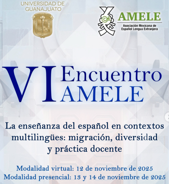 Começou hoje, 12 de novembro de 2025, o VI Encuentro AMELE – La enseñanza del español en contextos multilingües: migración, diversidad y práctica docente, organizado pela Asociación Mexicana de Español como Lengua Extranjera na Universidad de Guanajuato, México, sob a coordenação da professora Dra. Alma Laura Montes Hernández, pesquisadora parceira do nosso Grupo, através da RIELE (https://riele.ufsc.br/).Dentre as comunicações apresentadas estão as da